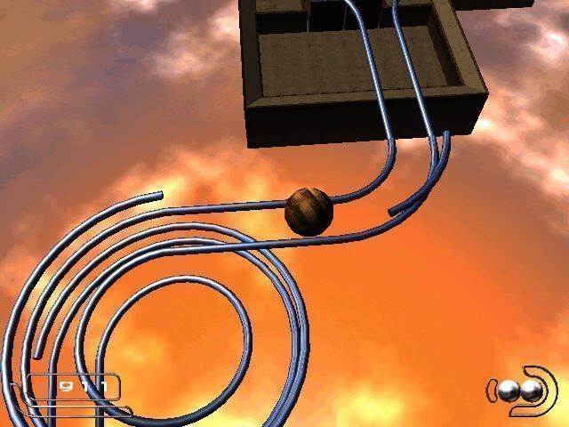 《3D平衡球》由德国雅达利公司旗下的Cyparade于2004年发布,游戏背景设定在一个超现实的云世界中,玩家需操纵一个球,在充满费解机制的高空或太空中的庞大而复杂的迷宫建筑里穿梭,面对令人目眩的高度和直线下降的深度,克服各种机关谜题,最终到达终点飞船,完成关卡挑战。