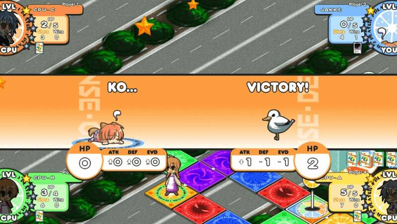 玩家通过格子、战斗、卡牌获得星星和赢分,满足Norma条件即可升级。当玩家达到5级并再次满足正常条件时获胜。