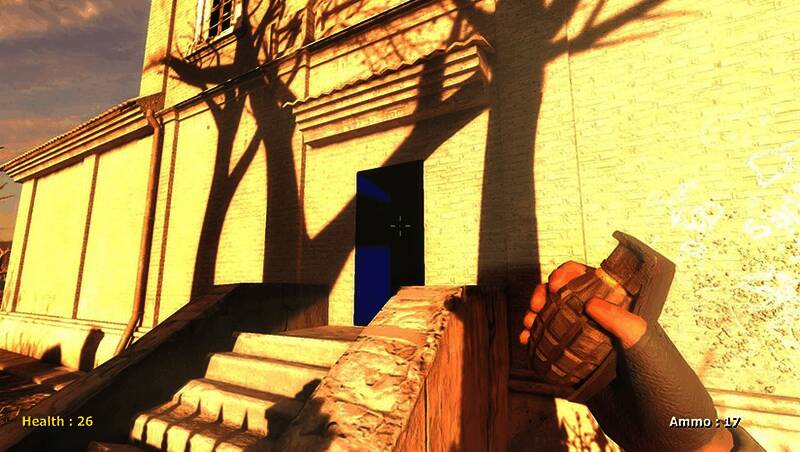这是第一人称射击游戏,玩家是拥有多种武器的射击者,玩家可以自由探索周围区域,敌人散布在玩家周围和建筑物内部,玩家可以杀死敌人或避免敌人的攻击并保持健康,玩家可以还抢敌武器。