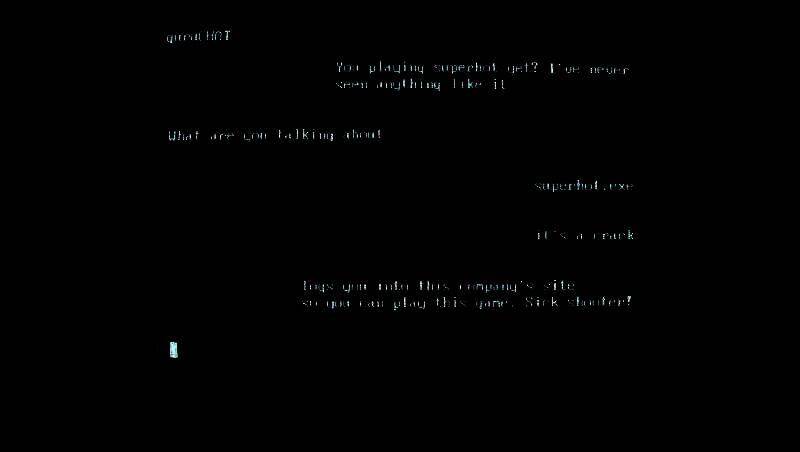 游戏剧情相对隐晦,智能 AI 觉醒后,发布了《SUPERHOT》这款游戏,目的是为了筛选出智力、反应、动手能力都出色的人类,然后误导这些优秀的人类击杀现实生活中自己的肉体,最后成为智能 AI 的一部分。