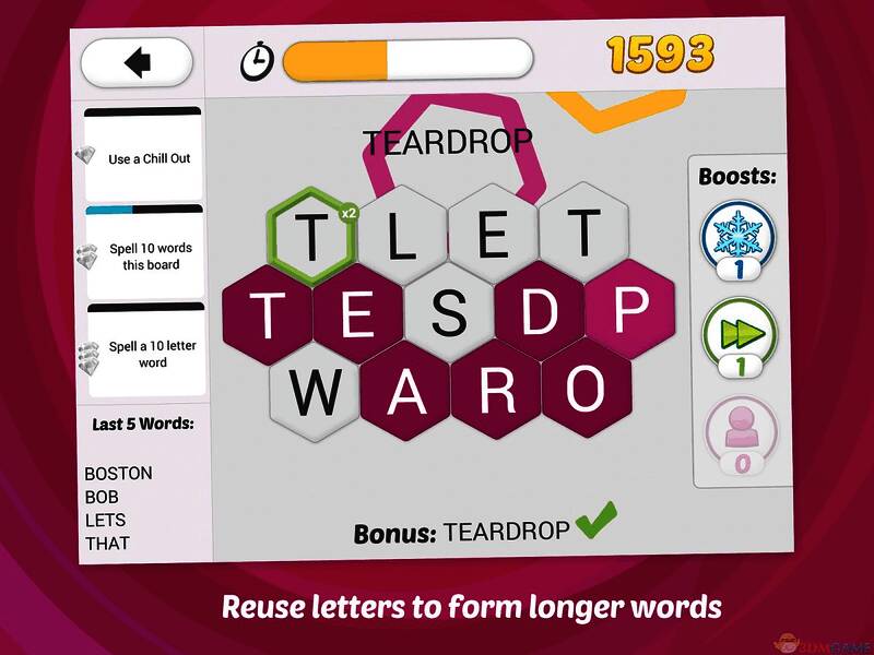 奖励的单词,每个字母板中都隐藏这一个奖励单词,发现它你可以获得大量的时间奖励