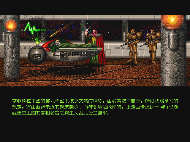 软体世界的高雄工作室在推出「鹿鼎记」之后,制作一套以未来的科幻世界为背景的战略RPG-「烈焰钢狼传」。玩者所扮演的,是宇宙间令人闻之丧胆的战斗佣兵团「死亡骷髅」之头目布莱克,因为喜欢亚达拉王国之蜜儿公主,而卷入了一场政治阴谋之中。在击退刺客之后,才知道原来亚达拉王国的国王突然驾崩,而继任者...