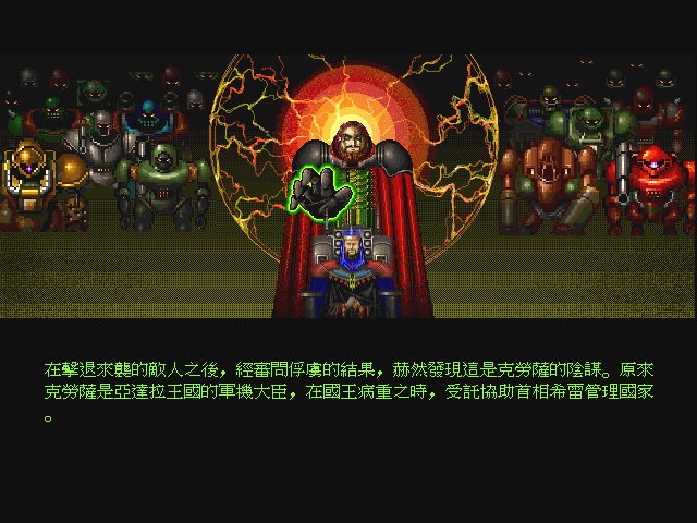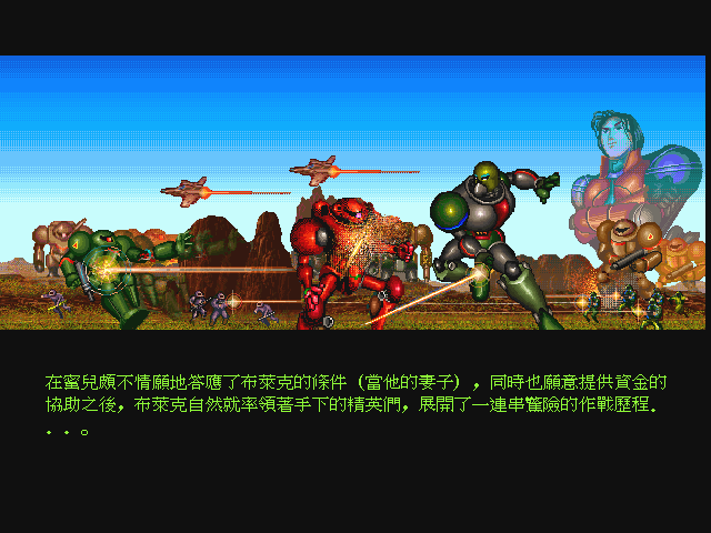 正当玩家们赞叹“C&C”的音效、“铁血十字军”的画质、“魔兽争霸Ⅱ” 的立体大战之气势时。作为炎黄子孙的中国人,也不甘示弱。──终于由智冠科技公司的“G战队”创作组,隆重推出了在音效、画质、气势上,与时代同步的跨世纪大战略类科幻战争游戏“烈陷钢狼传”。