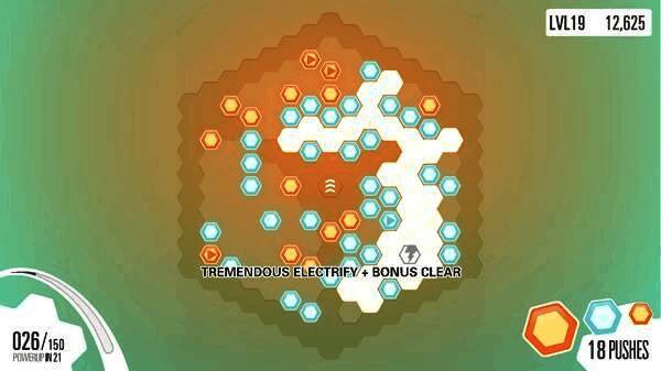 游戏基于消除的玩法进行了一定的变化,你要推动7个不规则的碎片合成一个较大的六角形,玩起来非常简单不用过多思考,但是独特的感官和视觉效果会让你体验到消除的乐趣。