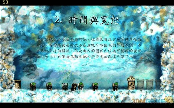 利用时间控制机制以及各种时间加速、减速和倒退的机关,来躲避危险、开启大门并收集散布在关卡中的拼图碎片。