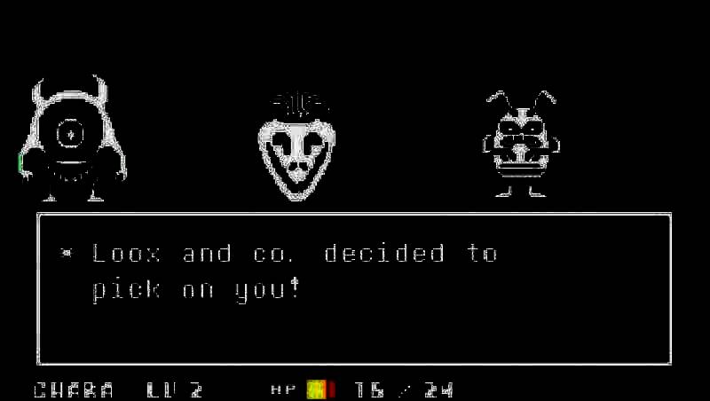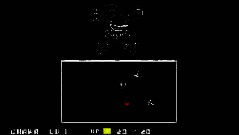 游戏采用回合制战斗系统,进入战斗界面后,玩家有战斗、互动、道具和饶恕四种行动选项。战斗时类似节拍音游,玩家需在白色条纹从左向右移动到中间时确定打出最大伤害,同时要操控心形图案躲避下方方框中的弹幕攻击。
