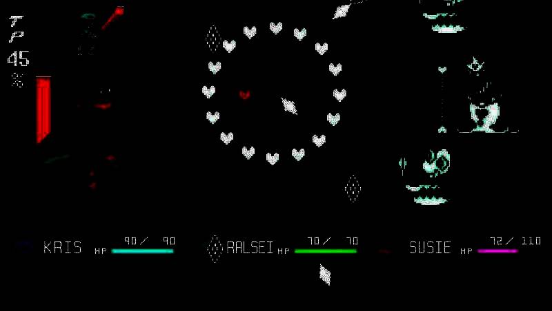 战斗中,Kris、Susie与Ralsei各有分工:Kris攻守均衡,Susie擅长输出,Ralsei则主修治疗与辅助。合理调配如Ralsei的群体治疗或Susie的破防技能“S-Action”,以及利用TP释放法术(如“冰爆”控场、“冻结技”限制敌人),成为取胜关键。