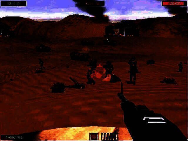 《抢滩登陆:沙漠》的游戏背景设定在一片荒无人烟的沙漠地带。沙漠战争从拱廊返回到计算机,玩家需保卫指挥所免受日夜攻击。在这个充满行动与惊险的滩头系列游戏中,新增了夜视、新纹理和沉浸环境等附加功能。玩家将在一场诱人的地面战斗中,面对敌人的攻击,把电脑变成沙袋掩体,仿佛置身于真实的战场之中。