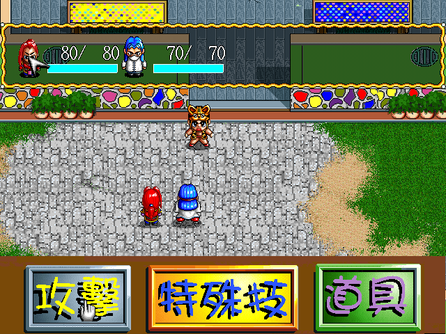 练功设计也别出心裁,即可到武斗馆与人比较腕力,利用连续敲击左右键和方式来获得胜利,以赚取经验值(在Win 95下运行时速度会减慢,用来比赛腕力可轻松过关)。