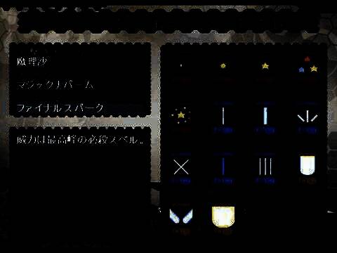 游戏待机画面时可以选择出击人物,以及该人物的装备。也就是Spell Card,分别对应Z键和X键。比如你可以将女仆长的普通飞刀设为SC1,再将时间静止设位SC2,那么就可以使用Z和X来分别放出这两个必杀技来攻击敌人。当然你也可以将SC1和SC2都设定为普攻或者SC,只要MP槽允许、统筹的过来就行。