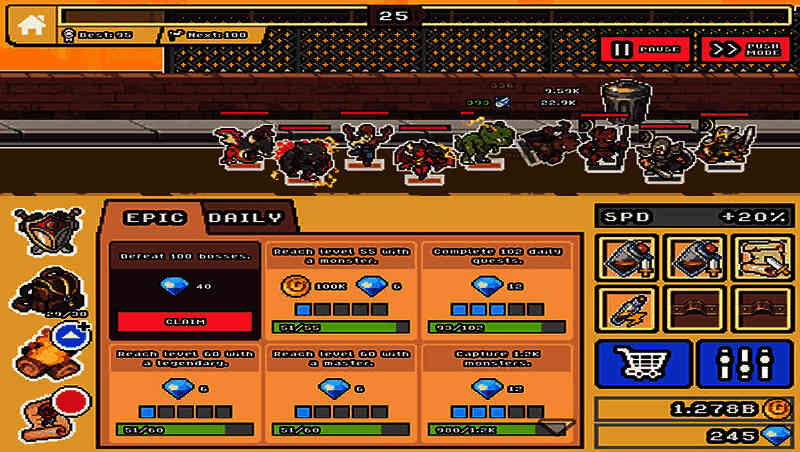 你的怪物团队可以进入塔中与传奇英雄和史诗级怪物战斗。在战斗中击败每一个怪物团队,便可以爬上塔楼,每次胜利都会收集宝石和怪物奖励。