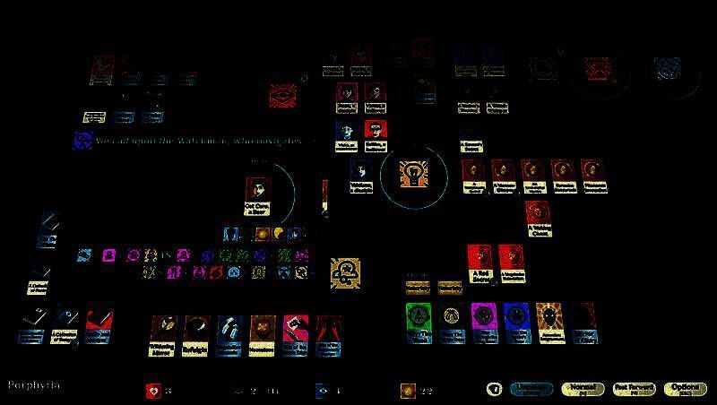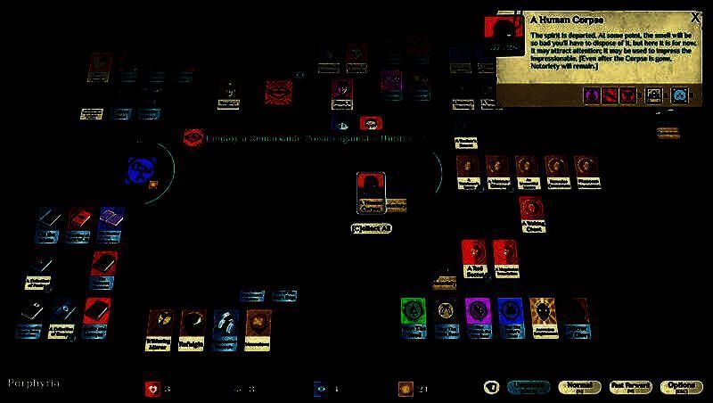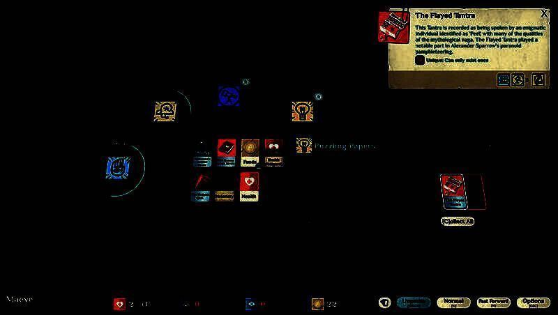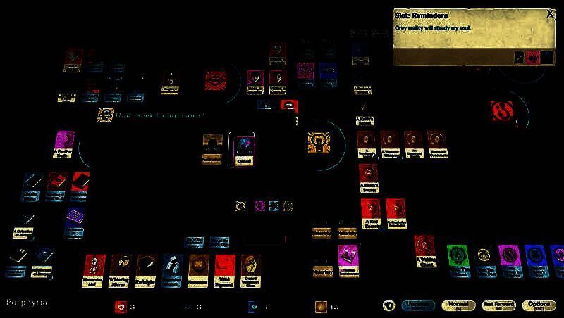 玩家通过拖放各种具有不同属性和功能的卡牌至相应的行动框卡槽来推进游戏流程。卡牌涵盖了工作、能力、影响、欲望、原料、文献、工具、密传、委托等多种类型,每种类型在不同的卡槽中有着特定的作用。