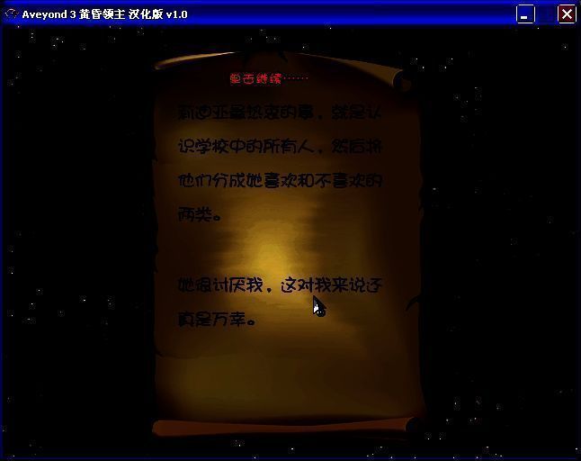 《阿月历险记3(Aveyond: Lord ofTwilight)》是由洋娃娃制作的一款角色扮演类游戏,一个街头大盗盗走了邪恶的宝物,发现他被一个强大的魔法师追赶着。邪恶的巫师,MordredDarkthrop 为了实现预言统治世界,主动采取了一系列行动。在他邪恶的目标实现之前,他和他唯一的儿子死亡的时刻,他暴政般的统治将会徒然瓦解。