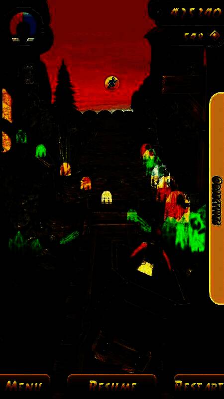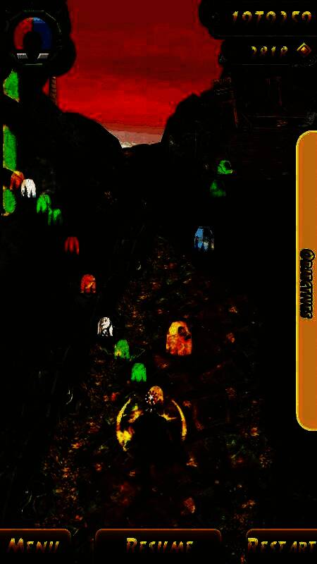 《神庙逃亡》是由Imangi Studios制作的一款动作冒险类游戏,一名冒险家来到古老的庙宇中寻宝,却碰上怪兽的追赶。玩家所需要做的动作只是转弯、跳跃和向后卧倒,需要翻过古庙围墙,爬上悬崖峭壁,在此过程中,你可以晃动设备收集金币。游戏操作很简单易懂,只需要一只手就能玩,但是它又如此困难,任何一个失误你都需要从头再来。
