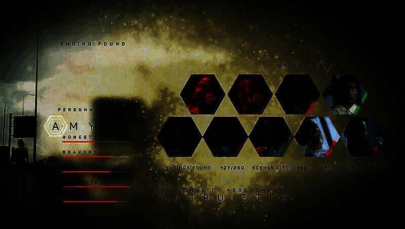 主角的性格取决于玩家的每一个决定和每一次互动,在剧情结尾,您将获得一个性格评分与评析。通过这些信息数据,您可以更清晰地了解自己的游戏过程,同时探索人格的五大基本特质:开放性,责任心,外倾性,宜人性,与神经质性。那么最终玩家的角色会是什么样的性格呢?