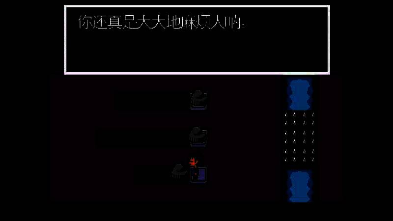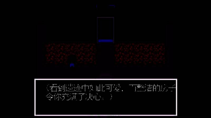 如果选择战斗的话,将会发现该作品的战斗系统是非常特别的,不是回合制或者其他常见类型,而更像是飞行射击游戏。躲闪系统是非常重要的,因为有些敌人攻击会直击玩家角色的心脏,当你落入箱子陷阱的时候,必须计算好攻击和躲闪时间,否则就会瞬间被秒杀。