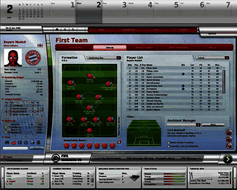 对于新手而言,我们特别准备了“助理教练工具栏”,它将对玩家设置战术起到重要的帮助作用。玩家的助手每分钟都会分析比赛的进程,并向玩家及时报告球员的比赛状态或是战术问题等等。