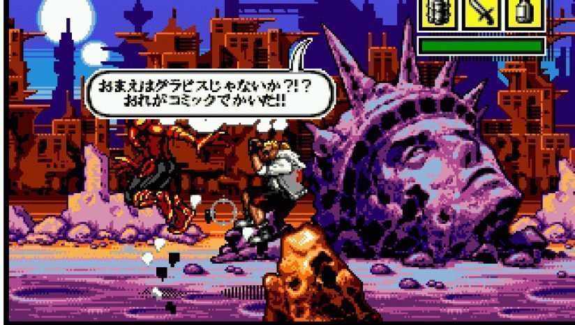 《漫画地带(ComixZone)》这又是一个完美展示了MD机能的游戏。漫画地带的风格非常非常独特,主人公被施了魔法,落入了一部连环画中,他必须打败敌人并逃脱出来。而他的对手,一个邪恶的漫画家,则不断地画出一个个强劲的敌人,挡在前进的路上。