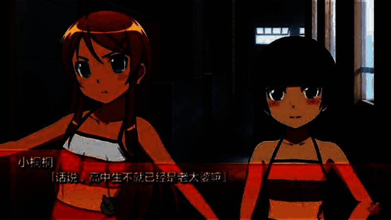 本作在普通对话状态下采用的是普通立绘,立绘和动画的人物造型是完全一致的,人物面部细节,口型以及语音同步方面相当不错,像桐乃傲娇的性格都表现的非常成功。另外游戏穿插了大量的精美CG,画风也是以动画为主,当然过场CG也是要通多周目才能完全收集的。