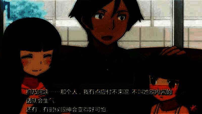 本作的画面,与传统avg游戏不同的是原立绘的基础上增加了2D画面效果的新技术“O.I.U”技术,其实也就是一种2D的拟三维成像技术。在平常对话状态下采用的是普通的立绘人物,而进入和特定角色的“探讨”模式时O.I.U系统才会出现。