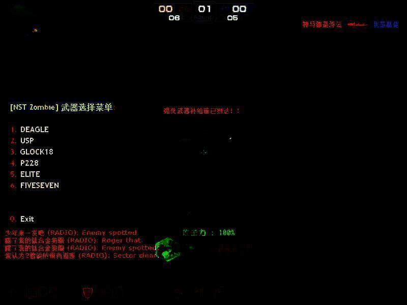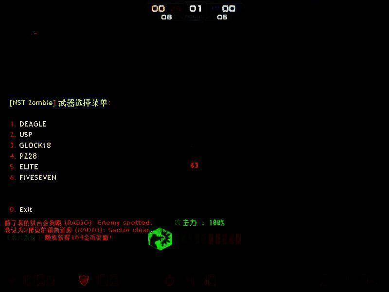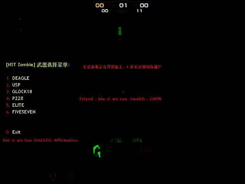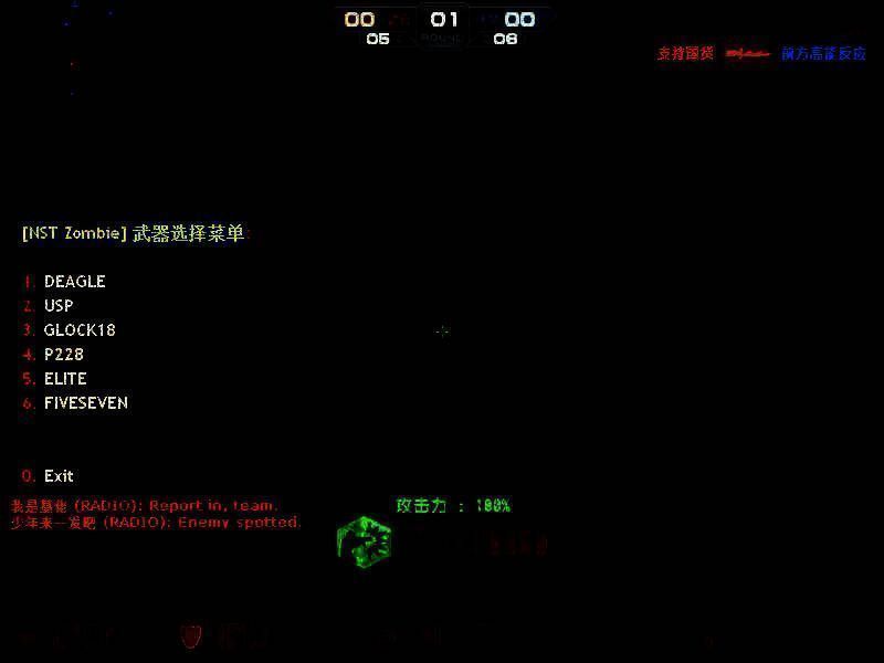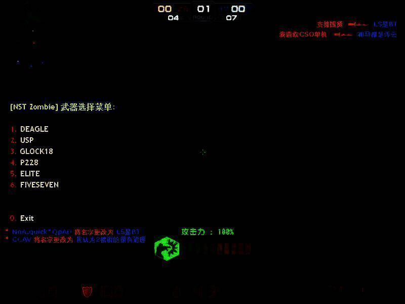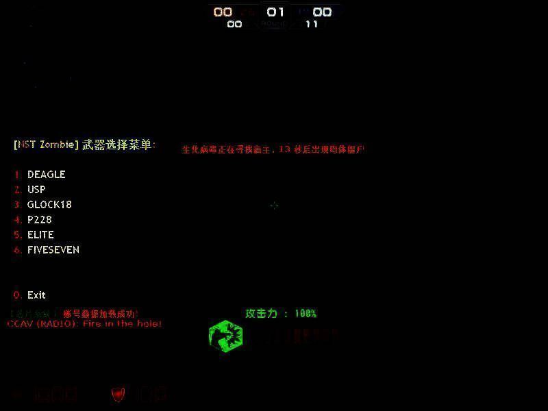 由少量的人类对抗大量僵尸群,每杀死一个僵尸可以获得100金币,击杀一定数量的僵尸后人物会升级,1011可以购买升级攻击力、生命值,血量每升一级增加20、攻击力增加10%(以上均可在nst_zombie_scenario.ini中修改)。