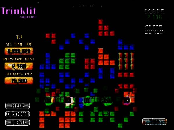 《组装方块(Trinklit Supreme)》是由Funkitron Games制作的一款休闲益智类游戏,游戏采用了大气而精美的2D图像,展示出不错的美术制作功底。在深色背景映衬下前景更显华丽,细腻而平滑的绘制结合流畅的动画效果,以及五彩缤纷消除标志和各种图案,构成了卡通感十足的高品质画面。游戏中充满轻松惬意的氛围,欢快活泼的背景音乐会随着游戏的过关一直进行,生动的音效也不可获缺。
