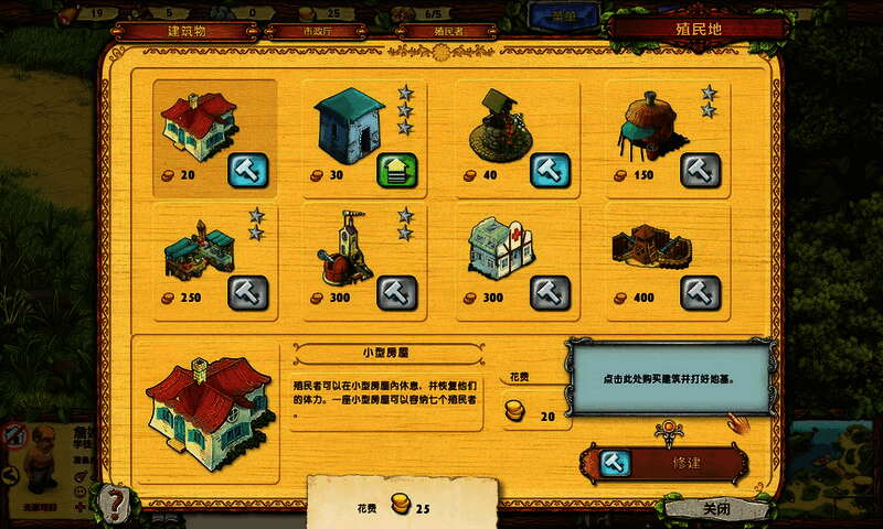 游戏采用鼠标控制,开始你可以随着操作提示来逐步熟悉各种功能,点击人物可以抓住它们拖动到任务地点去工作,房屋可以显示各种资源的收集和人物的能力,游戏中可研究的细节很多,随着游戏进行你将逐步掌握。