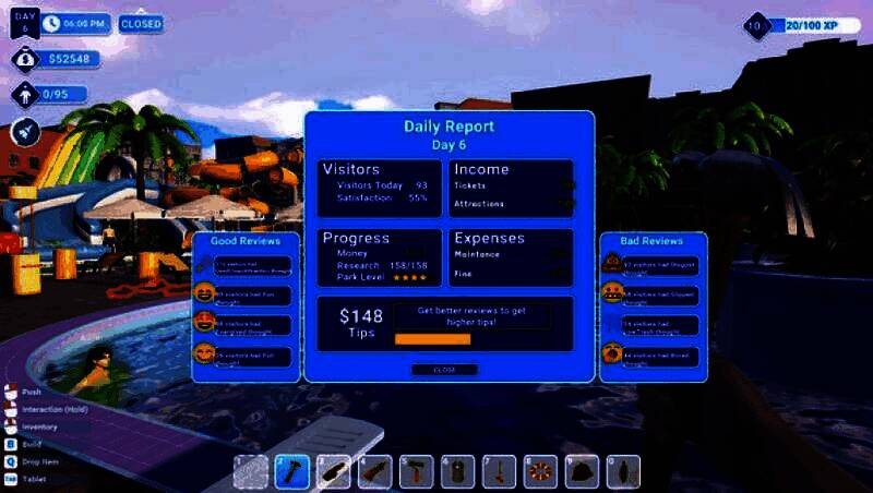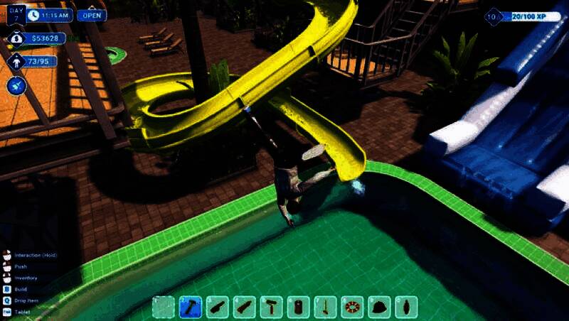 《水上乐园模拟器》(Waterpark Simulator)是一款由CayPlay独立开发并发行的第一人称经营模拟游戏,专为喜爱创意建造与沙雕互动的玩家量身打造。在游戏中,你将从零开始设计、建造并运营一座充满个性与乐趣的水上乐园,体验从“打杂小工”到“乐园大亨”的完整成长历程。游戏支持简体中文,现已推出免安装中文版,即下即玩,畅享清凉夏日经营乐趣。
