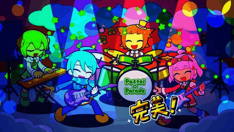 在视觉呈现上,《Pastel☆Parade》采用清新的糖果色系与二头身像素风角色设计,既保留了复古像素的怀旧感,又通过流畅的动作捕捉与舞蹈动画赋予角色鲜活生命力。动态背景元素如跃动的光点、扩散的音波与色彩涟漪,均与音乐节拍精准同步,强化了节奏的冲击力与沉浸感。UI界面简洁直观,核心操作区域清晰突出,确保玩家能够专注于演奏本身,享受纯粹的音游乐趣。
