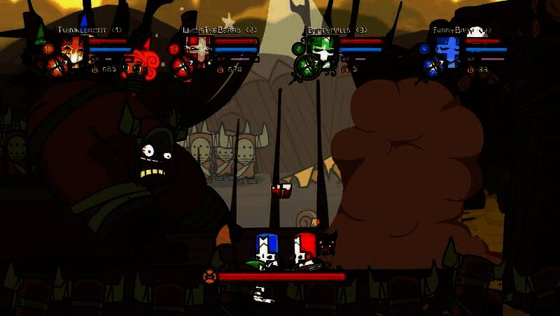 《城堡破坏者》是由独立工作室The Behemoth开发的2D横向卷轴动作冒险游戏。游戏采用鲜明的卡通手绘风格,以60帧高清画质呈现荒诞幽默的中世纪冒险。玩家将扮演骑士,组队对抗偷走魔法水晶并绑架公主的邪恶巫师,在多样化场景中展开闯关之旅。核心玩法融合砍杀与RPG元素,支持1-4人本地或在线合作,可解锁25+特色角色与40+武器,每个角色拥有独特魔法与连招系统,还能通过升级调整力量、魔法等属性。