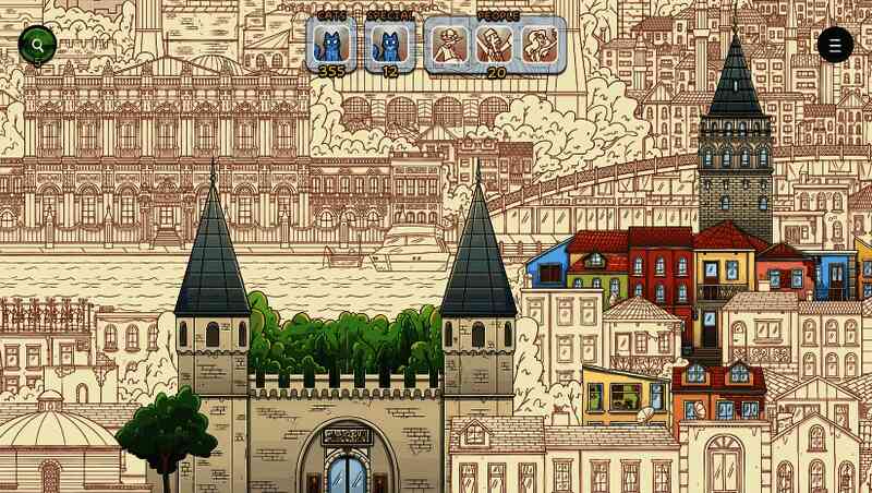 游戏采用“探索+收集+解谜”三位一体的机制。初始场景为素描风格,玩家需通过细致观察,点击隐藏区域唤醒色彩并找到潜藏其中的猫咪。每只猫咪被捕获后将转化为专属收藏卡,积累特定组合可解锁如“金色猫船”等特殊奖励。此外,寻找土耳其咖啡杯、地毯纹样等文化符号,还能触发趣味历史小剧场,讲述关于苏丹宠猫或民间传说的奇幻片段,寓教于乐。