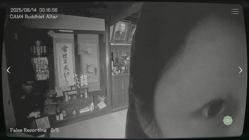 在画面表现上,《日本事故物件监视协会》高度还原了90年代VHS录像质感,监控画面充满雪花噪点与信号干扰,配合昏黄灯光下漂浮的尘埃、摇曳的窗帘影子,极大增强了临场感。夜视模式采用青绿色调,突显幽冷氛围,而鬼影往往以惨白轮廓短暂闪现,形成强烈视觉冲击。随着理智值下降,屏幕噪点加剧、镜头出现不规则抖动,甚至伴随耳鸣与呼吸声加重,直观传达角色精神崩溃的过程。开发团队还特邀日本专业凶宅清洁公司提供顾问支持,真实还原诸如榻榻米缝隙残留血迹、浴室排水口缠绕黑发等细节。部分场景直接引用东京、大阪等地真实事故物件地址,建筑结构亦参考经典恐怖电影布景,使玩家在熟悉的文化语境中感受深层恐惧。