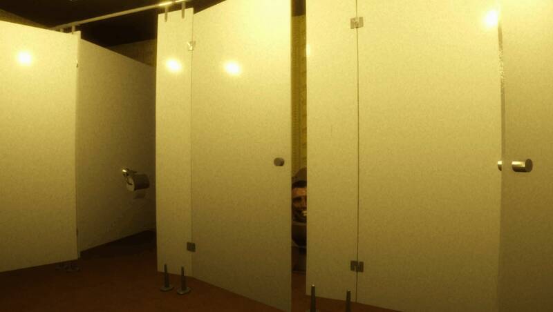 游戏采用动态光影系统与高对比度色调,营造出压抑而不失精致的视觉风格。受包豪斯运动影响的场景设计,展现出锋利几何线条与泼洒色彩之间的强烈冲突。可交互物件如变形的门把手、闪烁的屏幕增强了沉浸感,而随机事件触发的环境重构(如墙壁坍缩为像素块)则进一步提升了超现实风格的表现力。